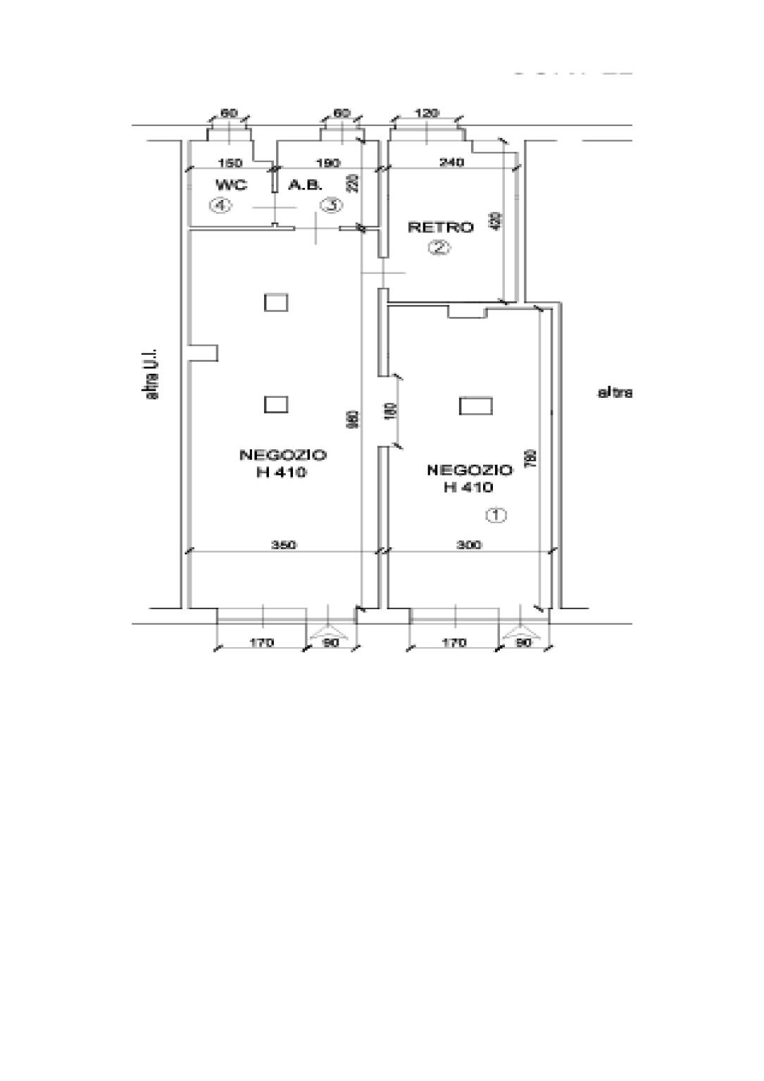 Internamente suddiviso da 2 grandi ambienti principali lato vetrine, uno studio nel retro, antibagno/ripostiglio e servizio.